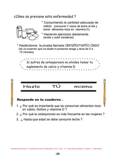Vea en imagen los contenidos de la ficha de trabajo sobre el Sistema Óseo para primaria.